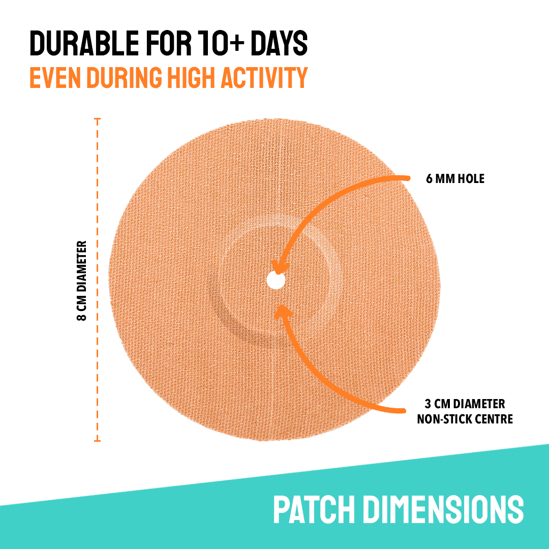 Our breathable adhesive patches are engineered specifically for FreeStyle Libre 2 and 3. With a slim profile, hypoallergenic adhesive, and proven 10+ day hold, they’re built to keep your sensor protected through workouts, hot days, and overnight wear.
